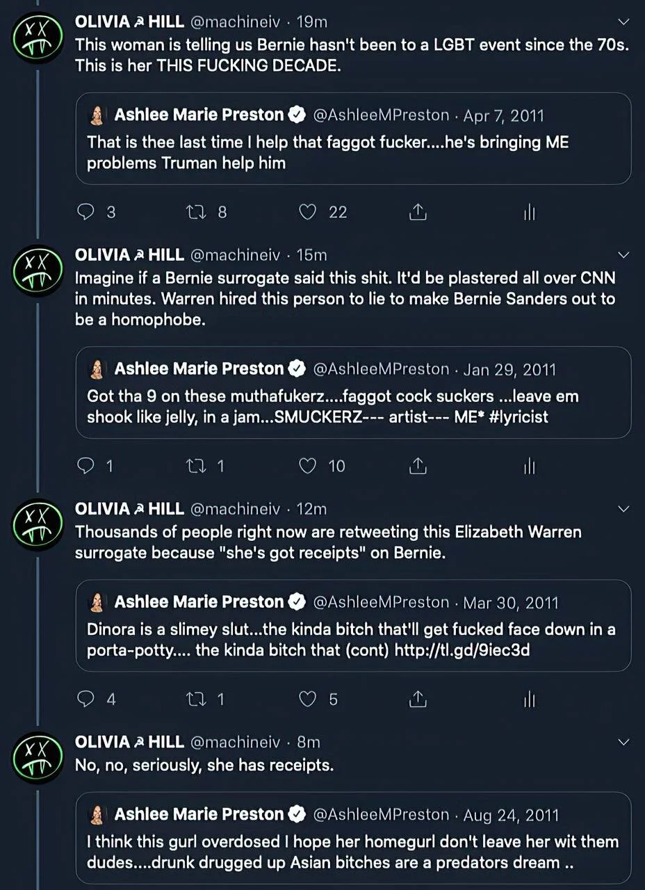 Clearly, while Preston previously played the moral puritan and condemned Bernie Sanders for not being sufficiently left-wing, Preston has learned nothing of the damage cancel culture has and has gained no deeper insight from this revelation.