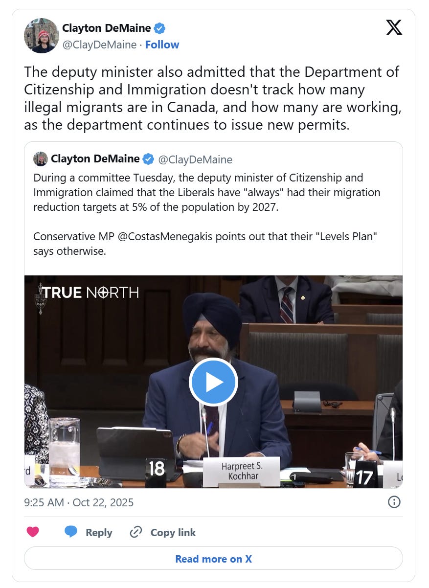 Rempel Garner pressured Kochhar, saying the government has already surpassed its target of bringing in 673,650 temporary residents in 2025, but officials disputed her number, saying the government’s targets are just for new migrants.