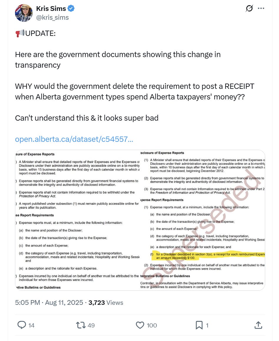 “Alberta has some of the strongest transparency rules and grassroots taxpayer protection laws in North America, and we must always be vigilant to keep it that way,” said Sims. “We are pleased to see the premier taking swift action to correct this and to make sure taxpayers can see how their money is being spent.
